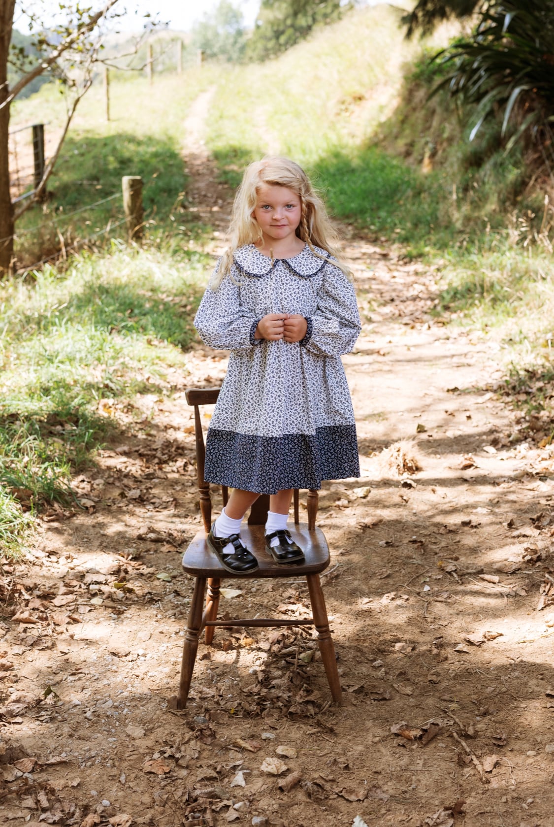 日本製コットンポプリン〈Ditsy Floral〉で仕立てたワンピースです。