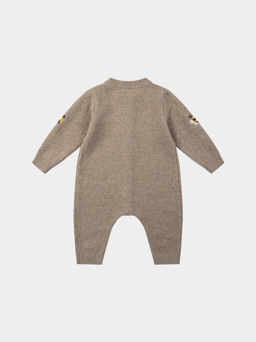 HAPPYOLOGY / Quinn Hand-Embroidered Knitted Romper , Smoky Brown
